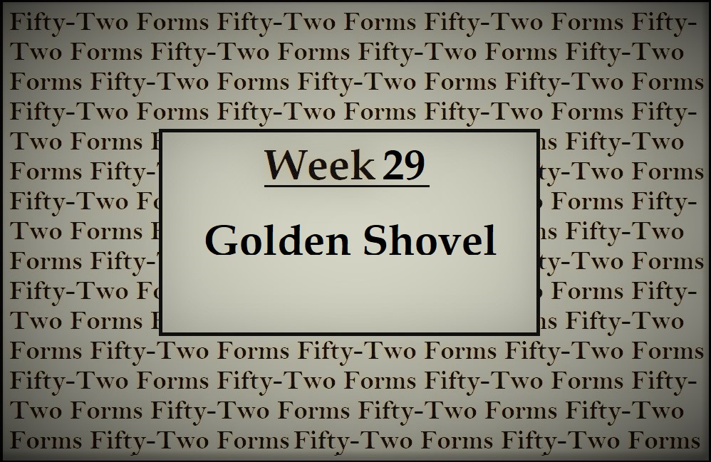 The Golden Shovel borrows a line (or sometimes many lines) from an existing poem by another poet and uses each word from the existing line(s) as the end word for each line of a new, original poem. This is a great way to give a shout-out to a poet you admire, so always be sure to give credit to the original author!